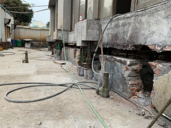 浙江澤威搖臂制造車間局部基礎(chǔ)加固、頂升糾傾工程