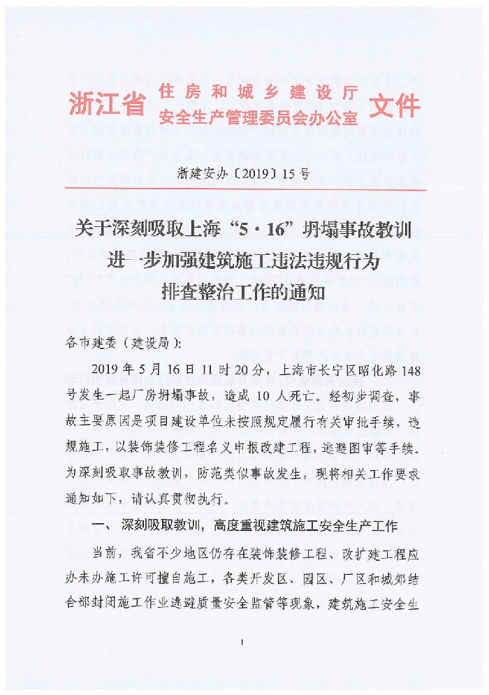 關(guān)于深刻吸取上海5?16坍塌事故教訓(xùn),進(jìn)一步加強(qiáng)建筑施工違法違規(guī)行為排查整治工作的通知